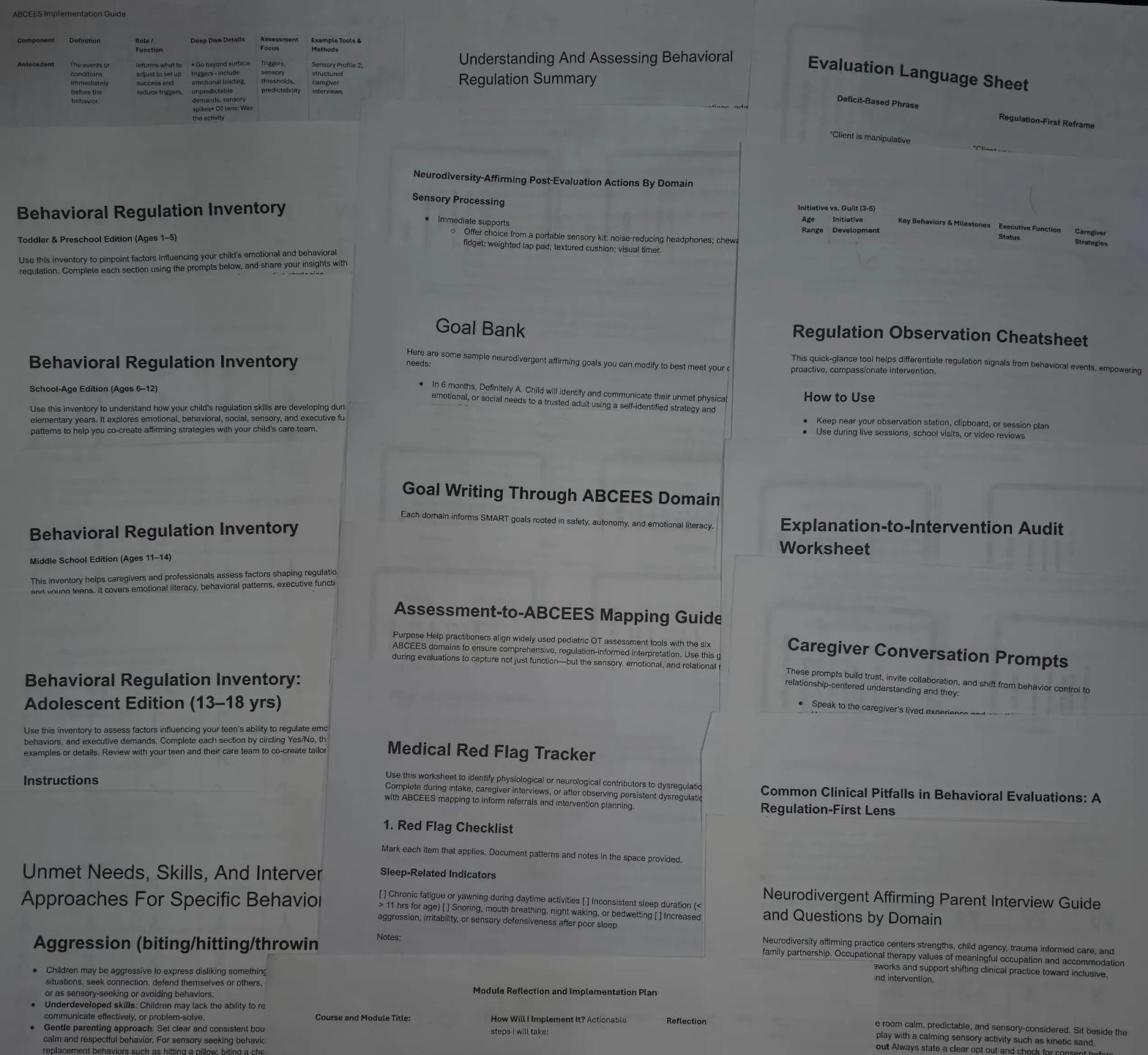 Get 25 practical tools: screeners, goal bank, and more. Earn .2 AOTA CEUs. Learn trauma informed, neurodivergent affirming frameworks and behavior assessment tools. All for only $49.